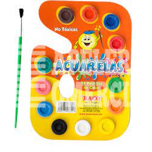 ACUARELA ESCOLAR CON 12 COLORES MARCA BACO
